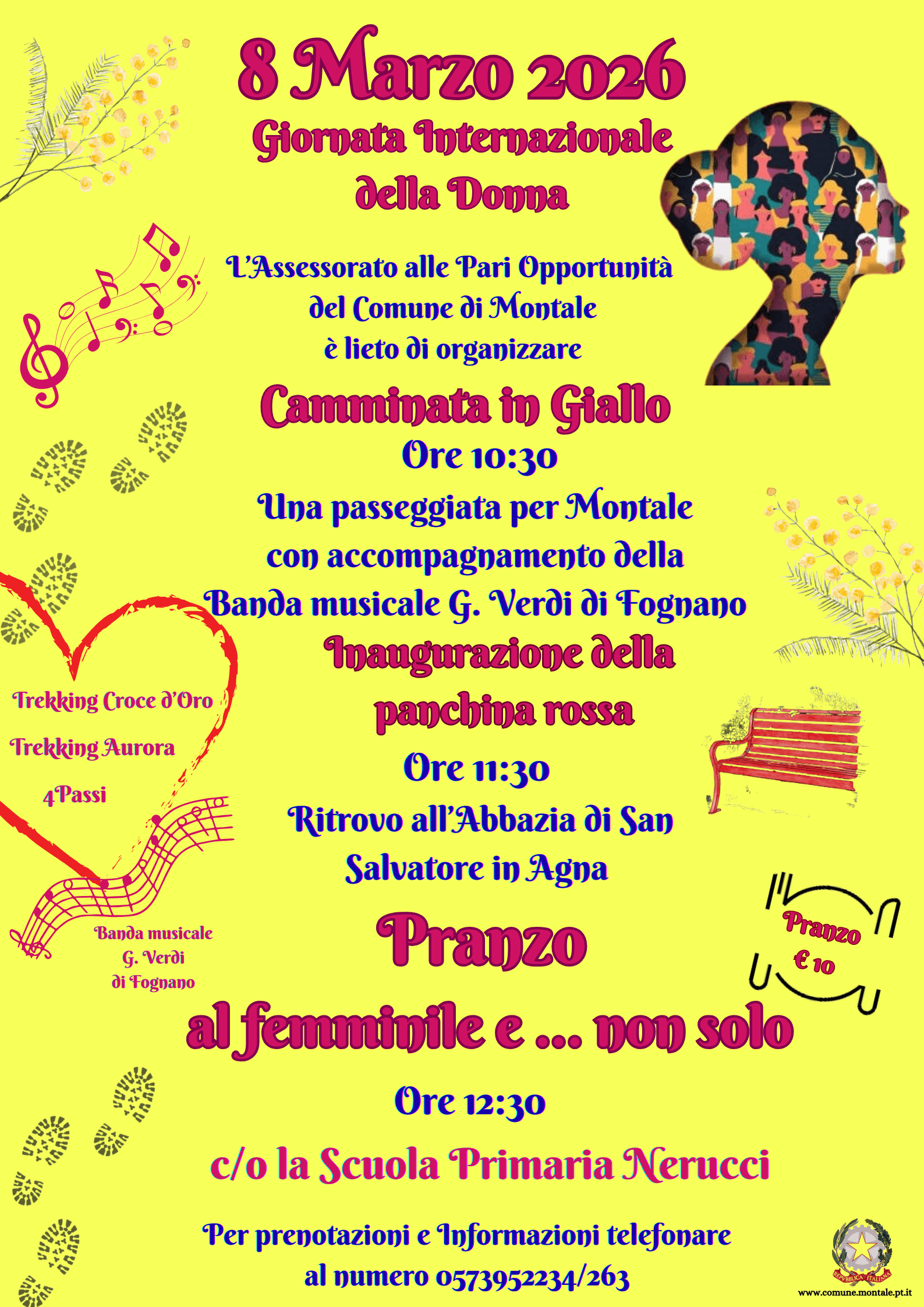 In occasione dell’8 marzo, Giornata internazionale dei diritti delle Donne, Montale celebra le conquiste ottenute nel tempo e ricorda le discriminazioni e le violenze che ancora persistono con l’iniziativa Camminata in Giallo.