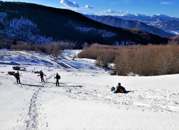 Da Piazza delle Piramidi vi inoltrerete tra i boschi innevati fino alla Fontanina, per poi salire verso il Monte Maiori e attraversare la Foce delle Verginette, raggiungendo il Rifugio Casetta di Lapo (aperto soltanto in estate). Da qui proseguirete lungo il crinale fino alla sella sud del Libro Aperto.