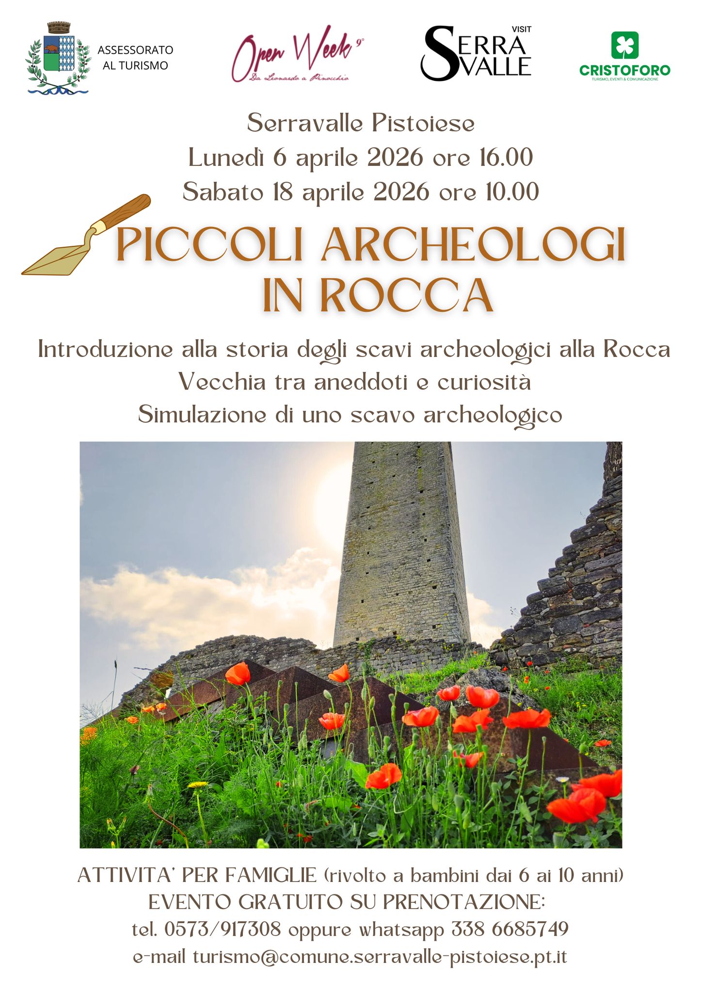 A Serravalle Pistoiese tornano gli appuntamenti di Piccoli archeologi in rocca, laboratori per bambini dedicati al mondo dell’archeologia.