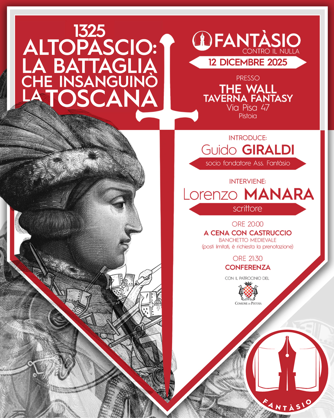 Venerdì 12 dicembre 2025, presso The Wall – Taverna Fantasy, l’Associazione Fantasio presenta l’incontro 1325, Altopascio: la battaglia che insanguinò la Toscana, incentrato sulla figura di Castruccio Castracani e sulla celebre battaglia di Altopascio.