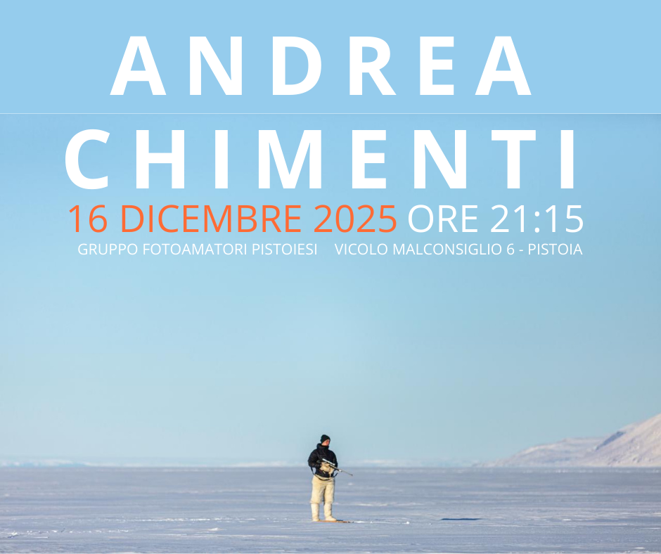 Andrea Chimenti (Pistoia, 1999), fotografo indipendente, sarà ospite del Gruppo Fotoamatori Pistoiesi martedì 16 dicembre 2025, alle ore 21.15. L’incontro sarà dedicato ai suoi lavori, al suo percorso e ai suoi progetti di ricerca fotografica. Dopo la presentazione sarà possibile dialogare con l’autore e approfondire temi, processi e dinamiche della sua pratica.