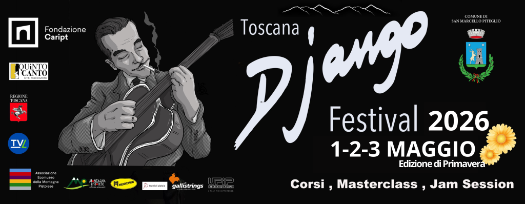 Da venerdì 1 a domenica 3 maggio 2026 si svolge l’anteprima del Toscana Django Festival, evento internazionale dedicato alla chitarra e alla figura di Django Reinhardt, che tradizionalmente anima la Montagna Pistoiese nel mese di agosto.