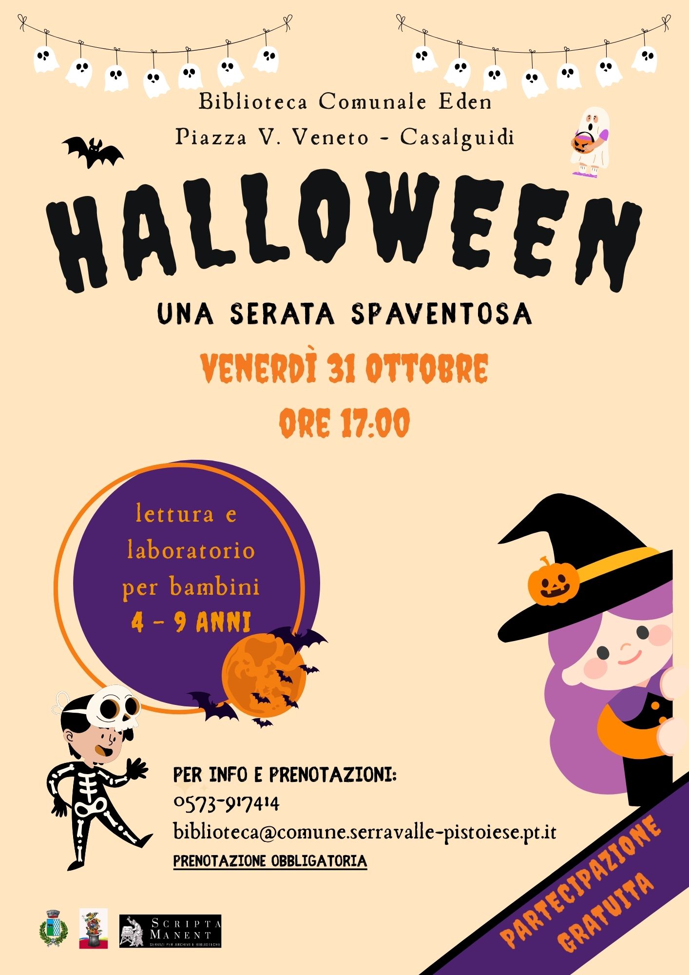 Venerdì 31 ottobre 2025, alle ore 17, la Biblioteca Eden di Casalguidi vi invita all’incontro Una serata spaventosa, con letture a tema Halloween seguite da un laboratorio creativo.