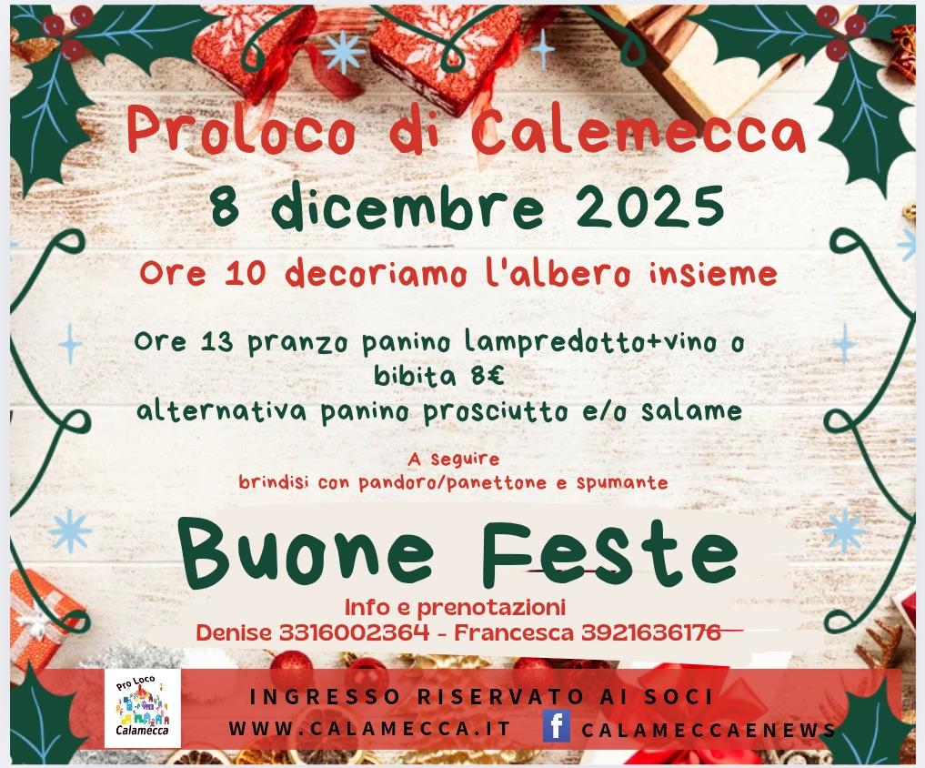 A seguire, al circolo, sarà possibile fermarsi a pranzo per condividere un momento conviviale e brindare insieme all’inizio delle feste.