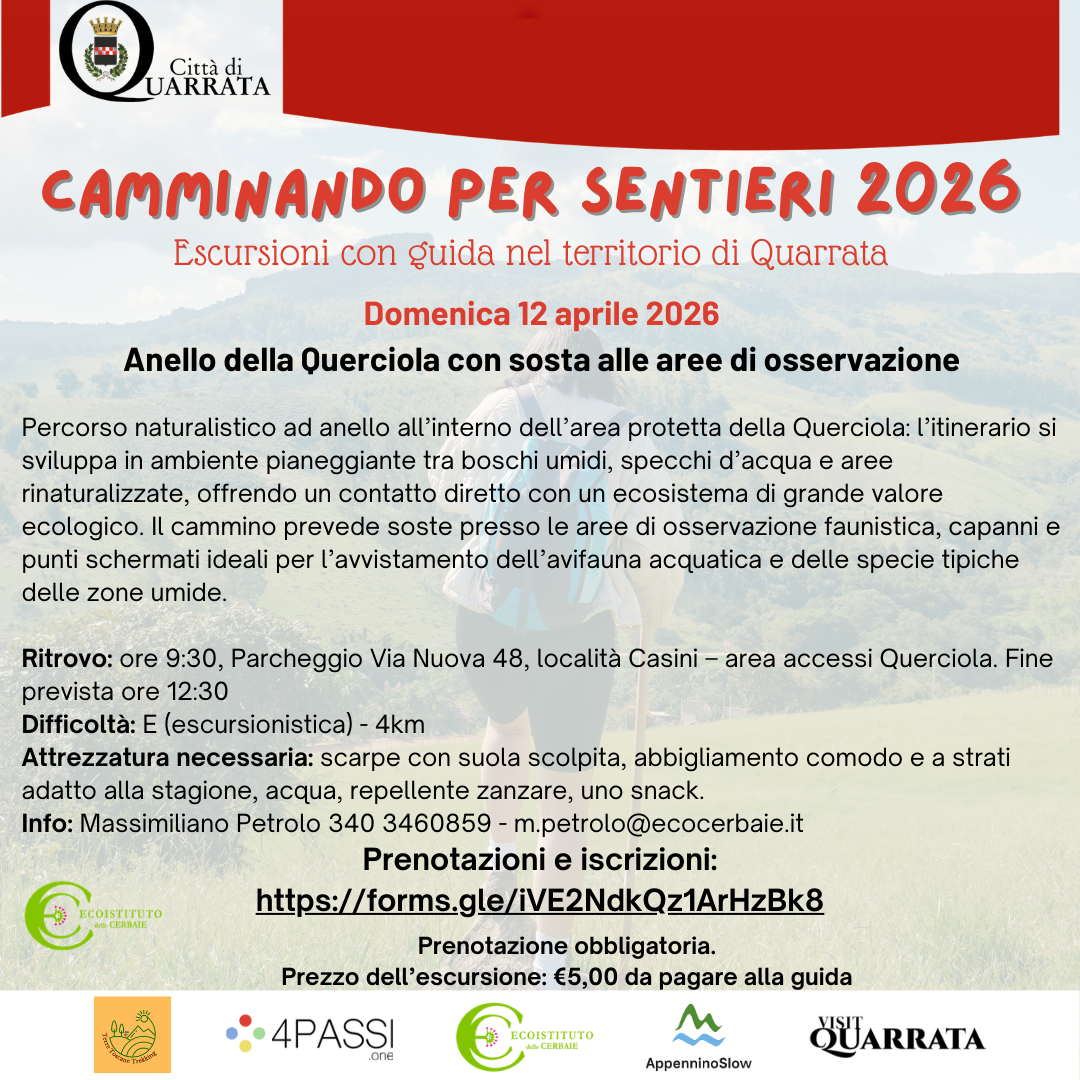 Ritrovo: domenica 12 aprile alle ore 9.30 presso Parcheggio Via Nuova 48, località Casini – area accessi Querciola