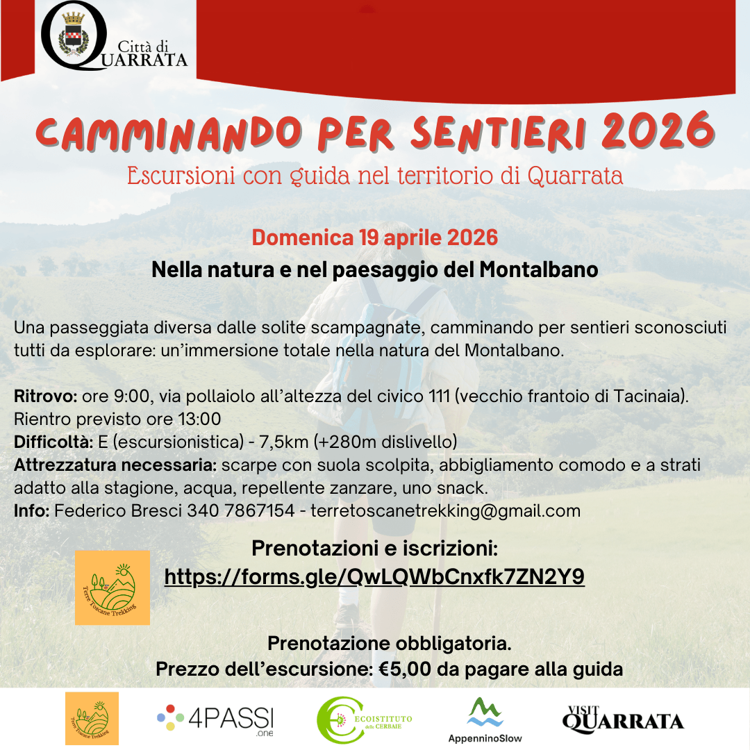 L’iniziativa fa parte della rassegna Camminando per sentieri 2026, un programma di escursioni che unisce la scoperta del territorio al piacere di vivere esperienze all’aria aperta.