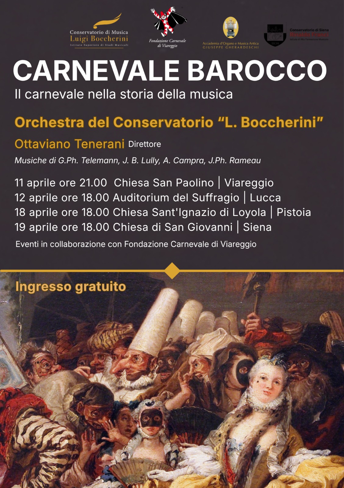 L’Accademia Gherardeschi vi invita a scoprire il calendario musicale Carnevale barocco, con l’Orchestra del Conservatorio Luigi Boccherini di Lucca diretta da Ottaviano Tenerani.