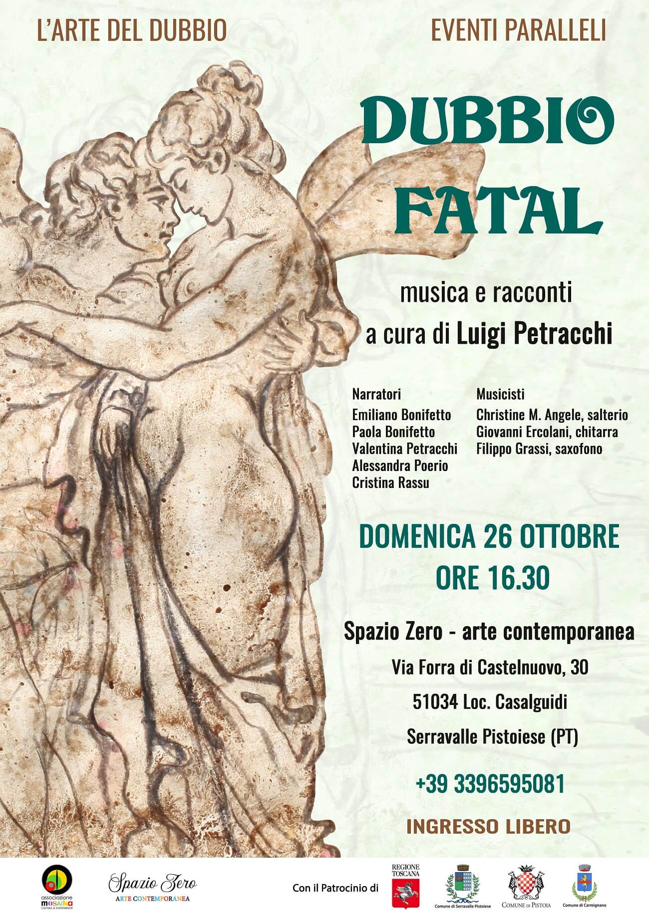 Dal mito di Amore e Psiche fino a un racconto iniziatico di Borges, passando per film, fiabe, poesie e storie fantastiche, Dubbio Fatal è uno degli eventi paralleli della mostra L’arte del dubbio presso Spazio Zero – Arte Contemporanea di Casalguidi.