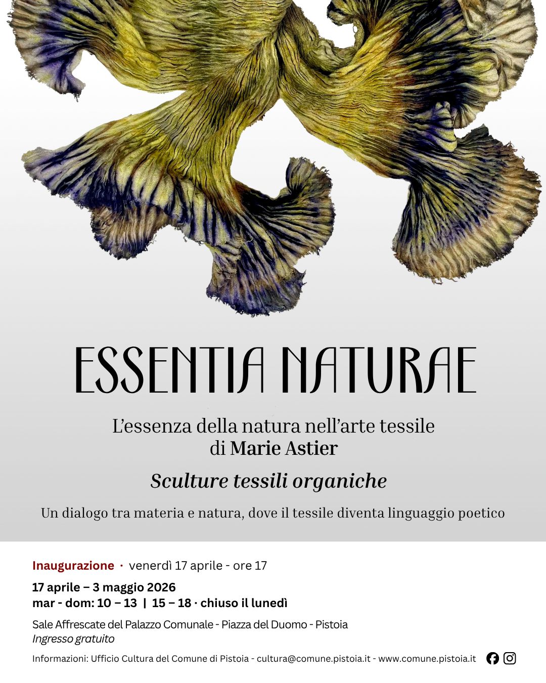 Scoprite questa raffinata arte con la mostra Essentia Naturae, dal 17 aprile al 3 maggio 2026, allestita presso le Sale affrescate del Palazzo Comunale di Pistoia.