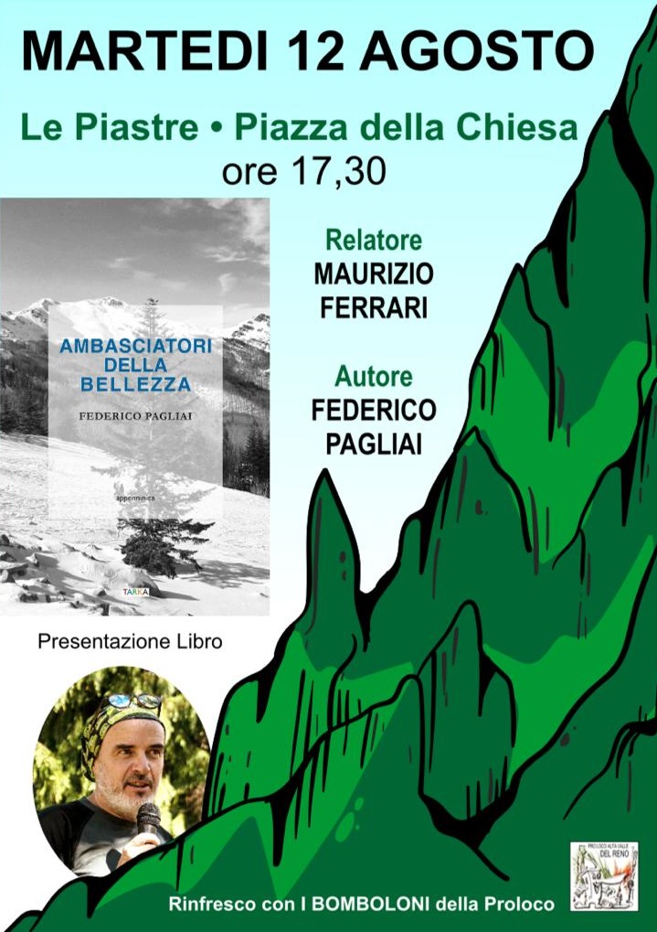 Martedì 12 agosto 2025, alle 17.30, in piazza della chiesa a Le Piastre, presentazione del libro Ambasciatori della bellezza di Federico Pagliai (Tarka, 2024). Introduce Maurizio Ferrari.