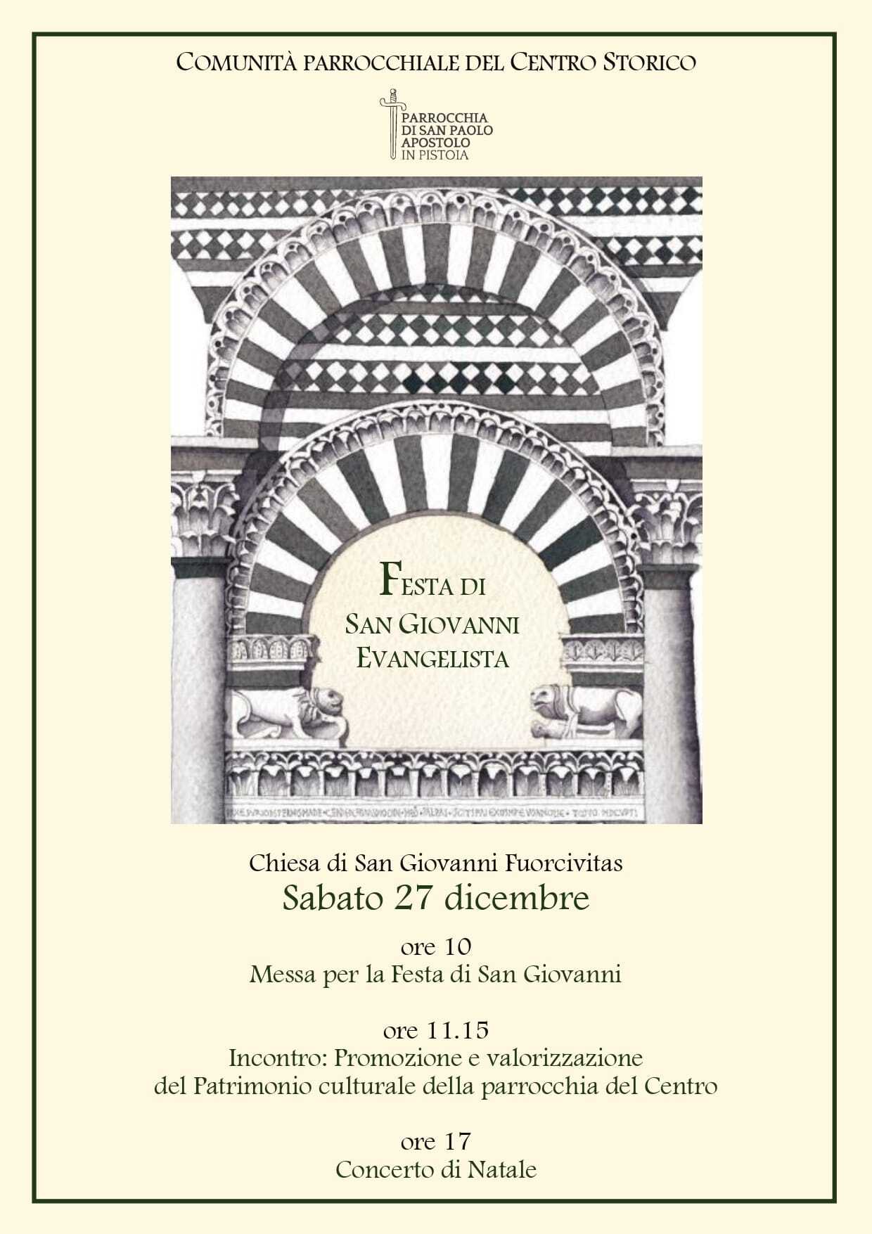 La comunità parrocchiale del centro storico di Pistoia vi invita sabato 27 dicembre alla Festa di San Giovanni Evangelista presso la chiesa di San Giovanni Fuorcivitas.