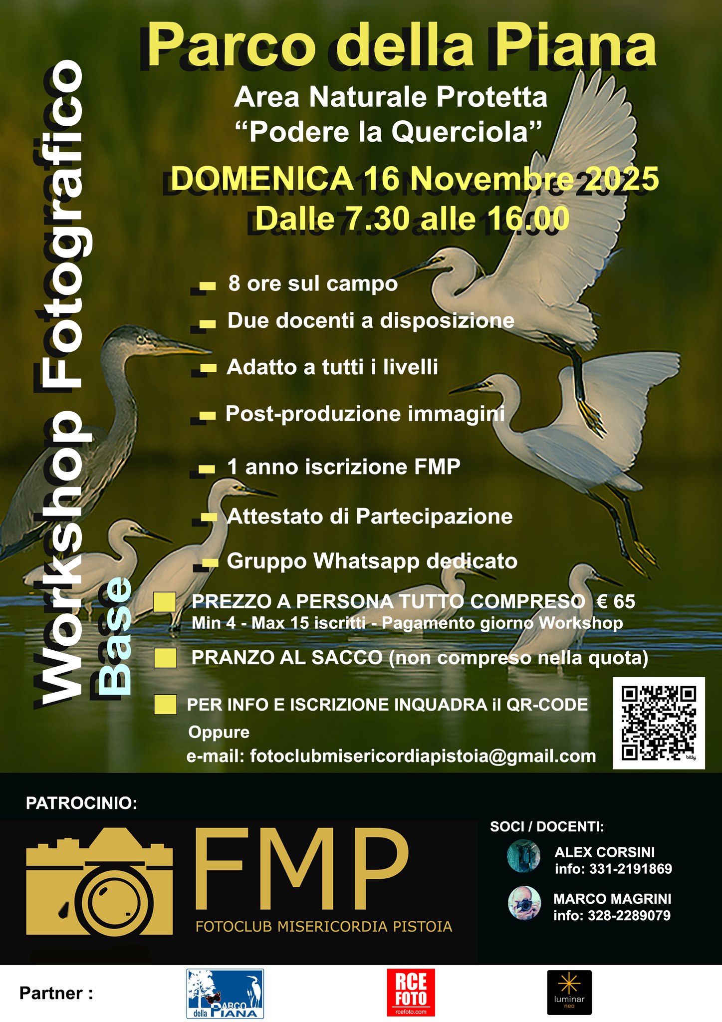 Domenica 16 novembre 2025, dalle 7.30 alle 16, unitevi al Workshop Base di Fotografia a cura del FotoClub Misericordia Pistoia, per una giornata interamente dedicata alla pratica fotografica immersi nella natura.