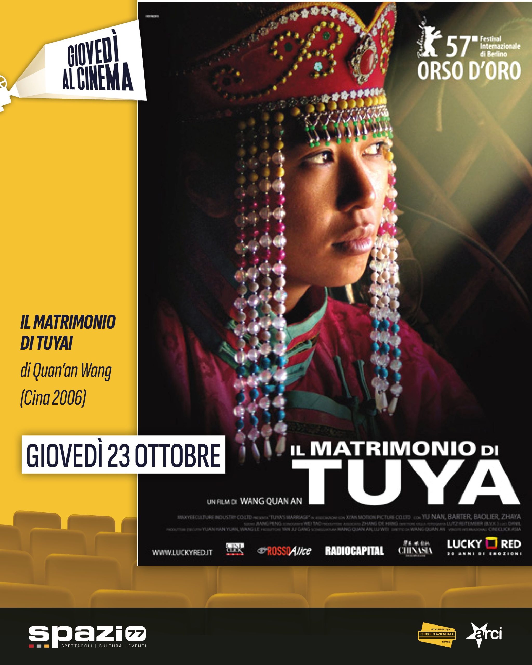 Giovedì 23 ottobre 2025, alle ore 21.30, allo Spazio 77 del Circolo Hitachi di Pistoia, quarta tappa del viaggio verso est di Giovedì al cinema. Sul grande schermo sarà proiettato Il matrimonio di Tuya (Cina, 2006) di Quan’an Wang, Orso d’Oro al Festival di Berlino.