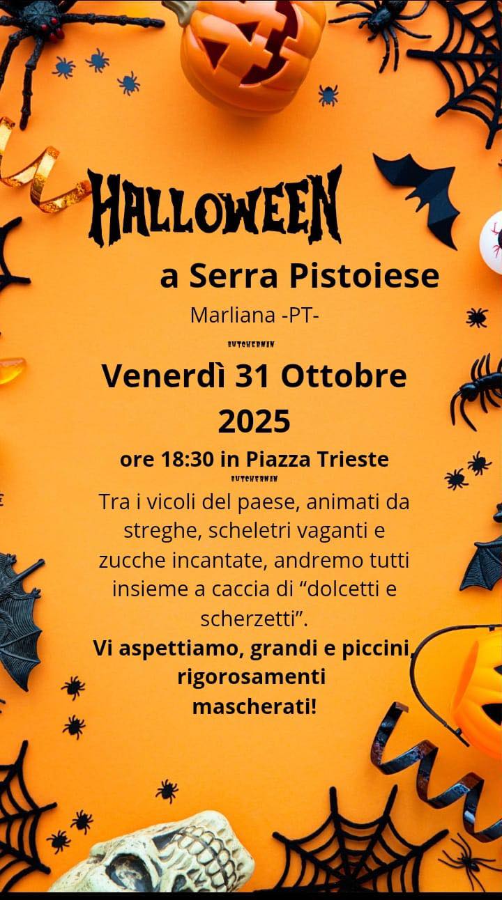 Venerdì 31 ottobre 2025, per la notte più spaventosa dell’anno, dalle ore 18.30, tra i vicoli del paese Serra Pistoiese, nel Comune di Marliana, streghe, scheletri e zucche intagliate prendono vita, per regalarvi un’esperienza da brivido.
