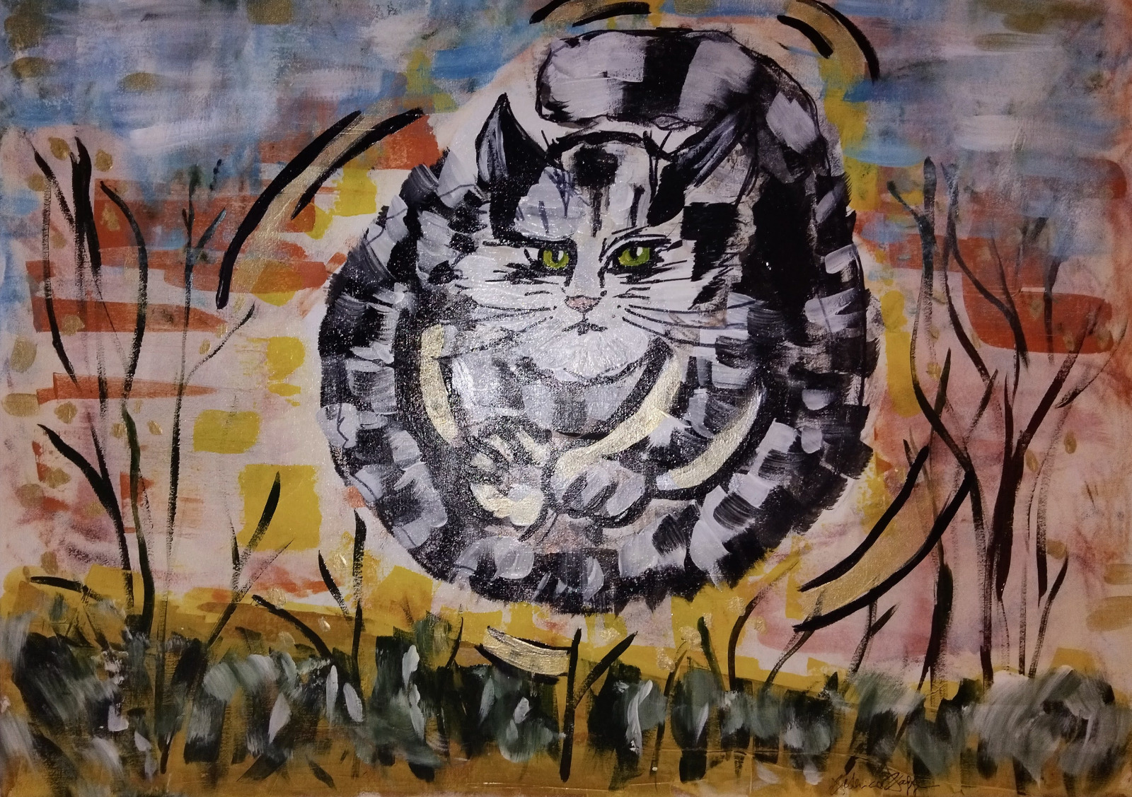 Dopo l’esperienza del progetto Jofé (2018–2022), l’artista approda a una ricerca personale che si concentra sul gatto come soggetto simbolico. Da questa ricerca, nel 2024 nasce Illustragatti, una serie di opere realizzate con tecnica acrilica e mista, utilizzando carta di riso, applicazioni e cartoncino, in cui il gatto è inserito in contesti onirici, talvolta pop o fumettistici.