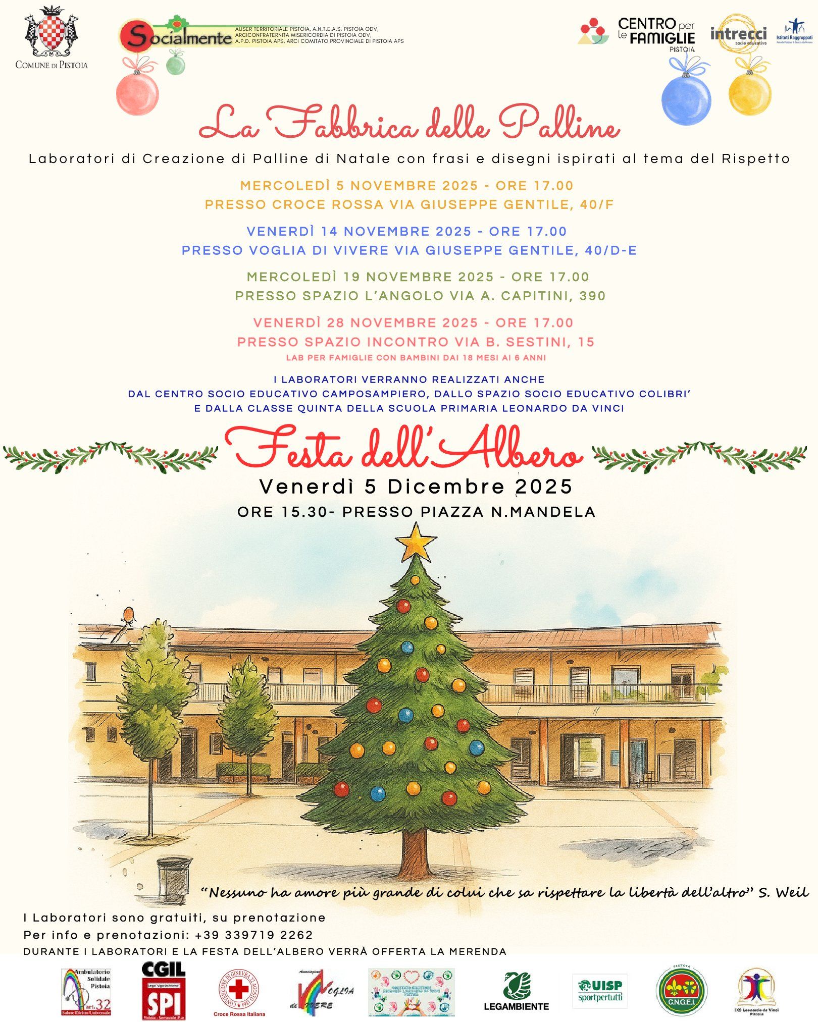 L’evento conclusivo sarà la Festa dell’albero venerdì 5 dicembre 2025 alle ore 15.30 presso pizza Nelson Mandela.