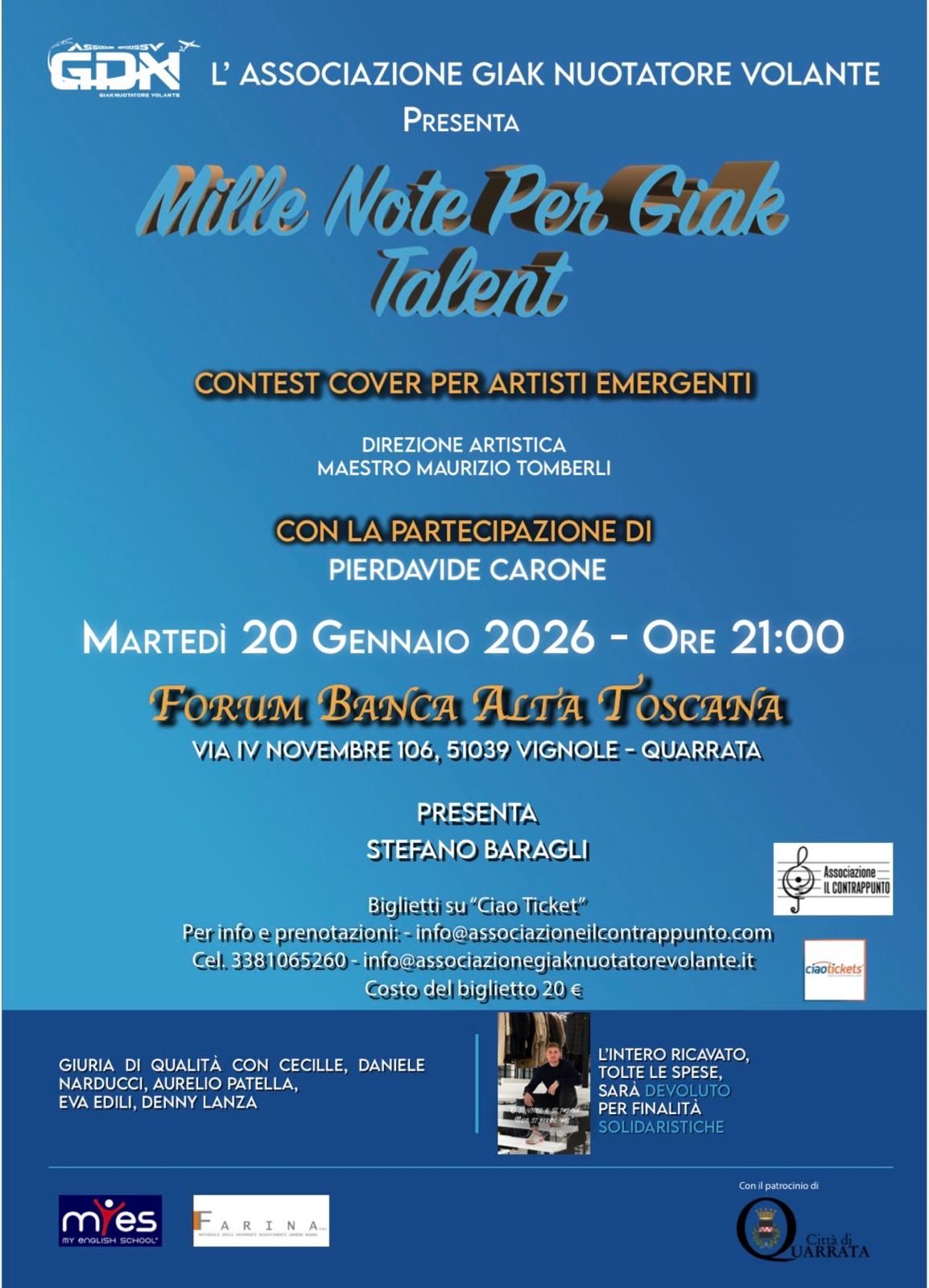 Martedì 20 gennaio 2026, alle ore 21, con la conduzione di Stefano Baragli, i giovani artisti saliranno sul palco del Forum Banca Alta Toscana di Quarrata per esibirsi sotto i riflettori.