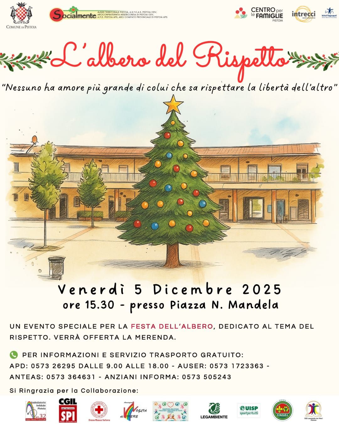 Si comincia venerdì 5 dicembre in piazza Mandela alle Fornaci con L’Albero del Rispetto, la festa per l’accensione dell’albero di Natale, un abete donato dalla Fondazione Giorgio Tesi Group e decorato con addobbi ispirati al tema del rispetto, realizzati da bambini, ragazzi, adulti e nonni nei laboratori di novembre.