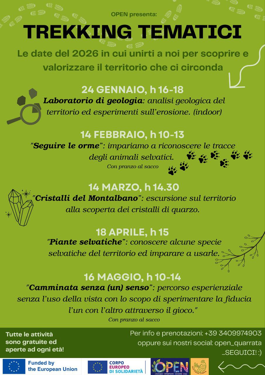Un calendario di trekking tematici alla scoperta del territorio, a cura di Open Quarrata, per valorizzare ciò che ci circonda, dalla flora alla geologia.