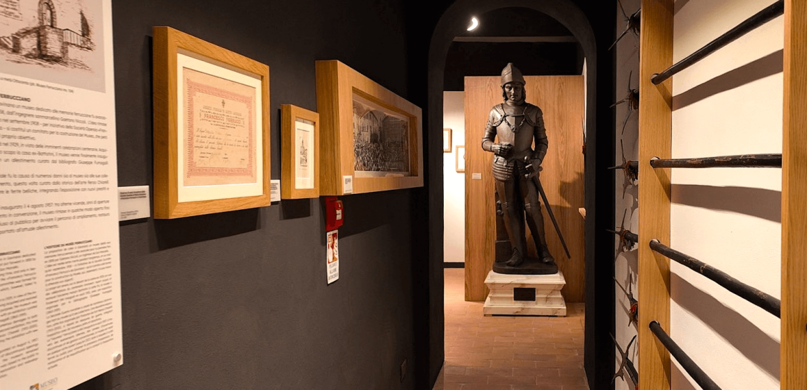 La collezione, oggi riordinata e valorizzata, comprende reperti e ricostruzioni che spaziano dai materiali d’epoca ai paramenti ottocenteschi, fino a dipinti, stampe e modellini che riproducono in scala la battaglia di Gavinana.