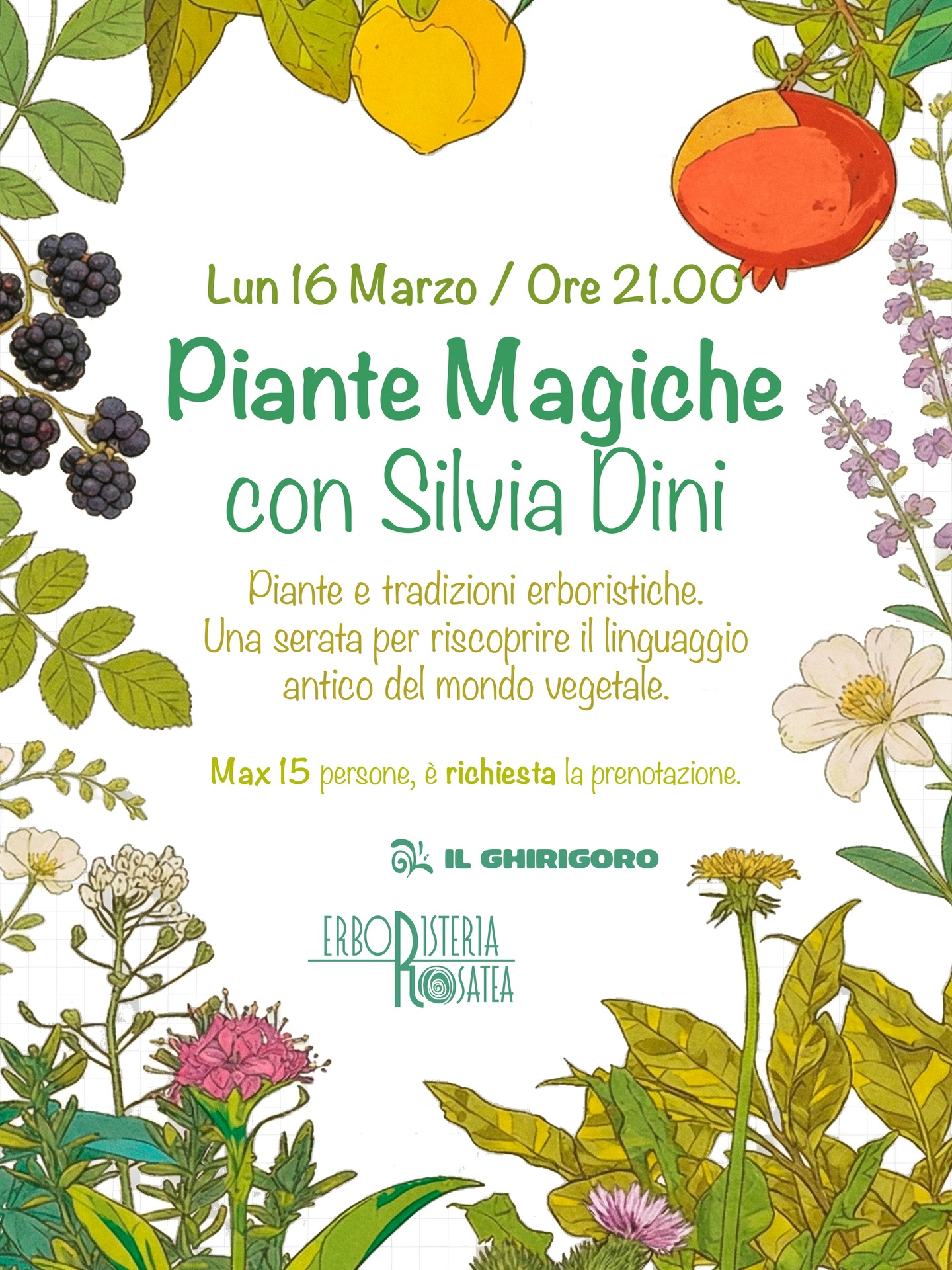 Lunedì 16 marzo 2026, alle ore 21, presso la libreria Il Ghirigoro, una serata dedicata alla scoperta delle piante e delle tradizioni erboristiche insieme a Silvia Dini. Un incontro per riscoprire il linguaggio antico del mondo vegetale e il sapere custodito nella natura.