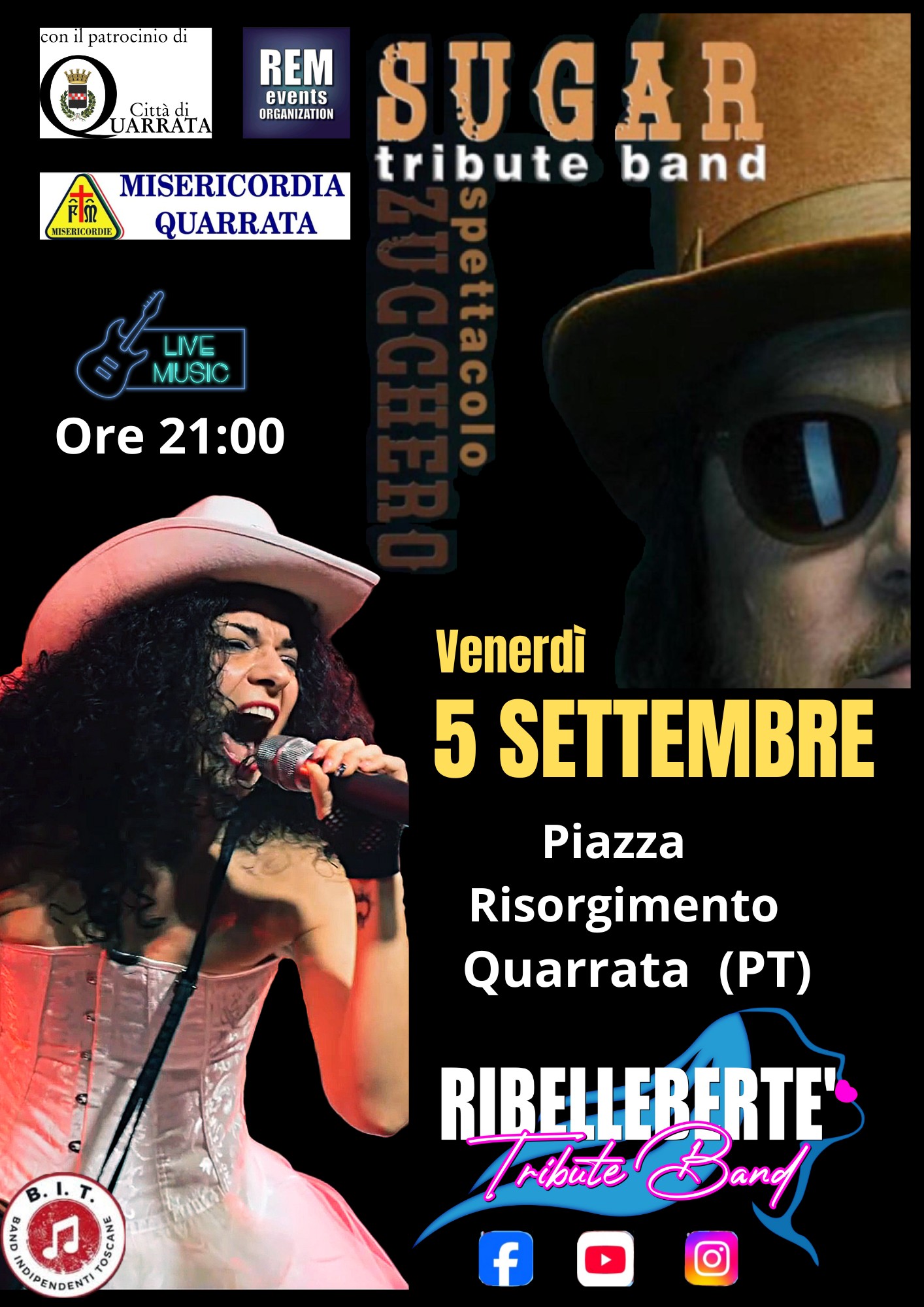 Prosegue il programma del Settembre Quarratino 2025: venerdì 5 settembre, in piazza Risorgimento alle 21, Sugar Tribute Band e Ribellebertè.
